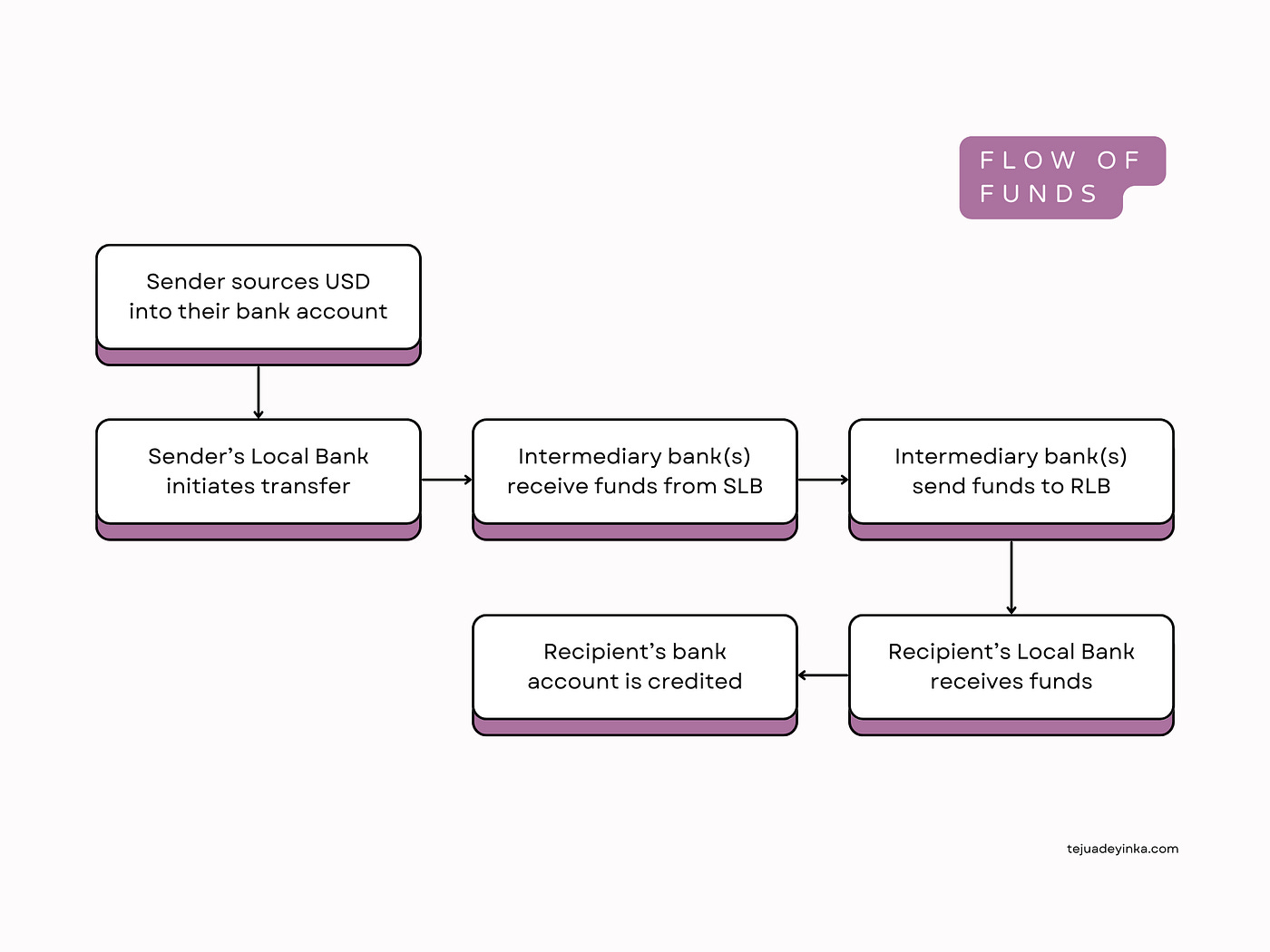 As the amount, currencies, entities, and countries involved in a payment increase, the complexity compounds in terms of fees, speed, and compliance requirements. Most cross-border payments in emerging market corridors (e.g. Nigeria to the US) look like: